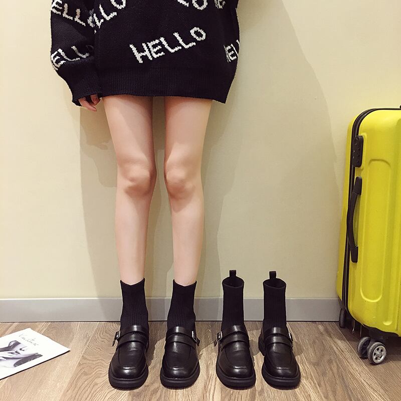 薄手ソックス ブーツショートスタンダードシングルベルベットストレッチストッキング レディース レトロ 靴 シューズ エラスティック 伸縮 タイツ 5/6 シューズ mi5590607319128