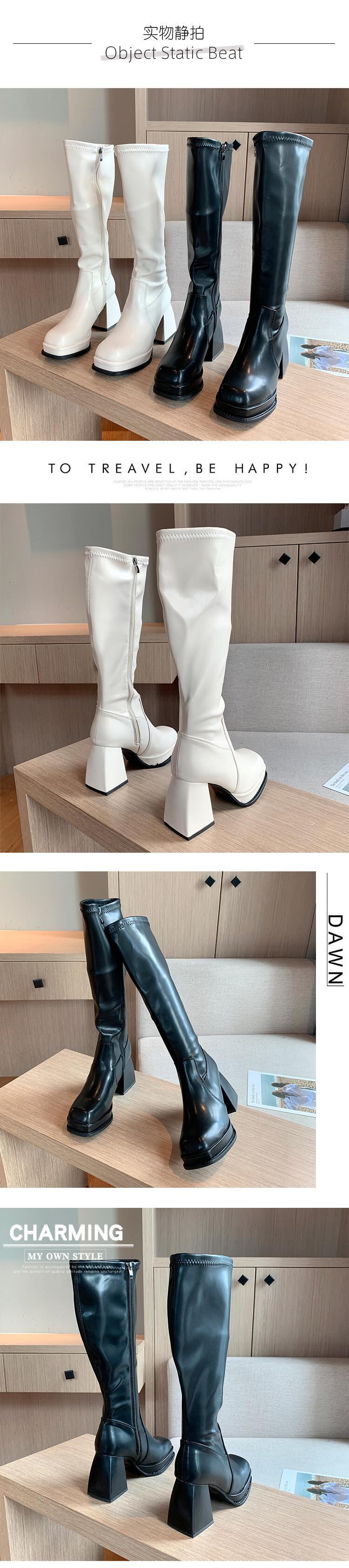 ロングブーツオータムウィンターレッドスタイル 靴 シューズ 秋物 冬物 スクウェア 8/3 シューズ mi5550405839682