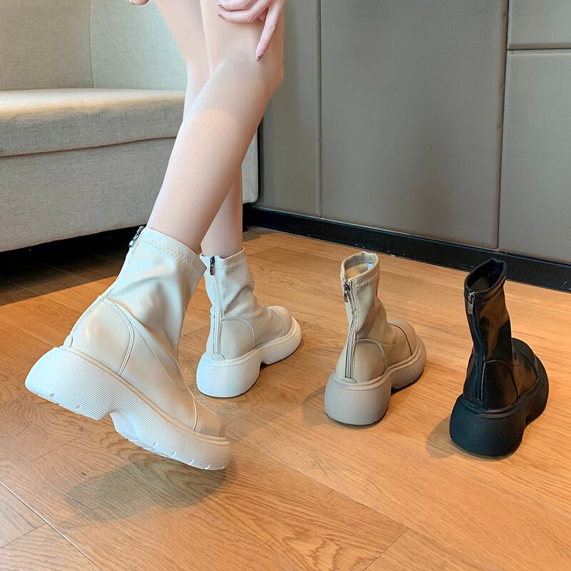 薄手ブーツオータムレッドホワイトショート 靴 シューズ 秋物 8/3 シューズ mi5571791998822