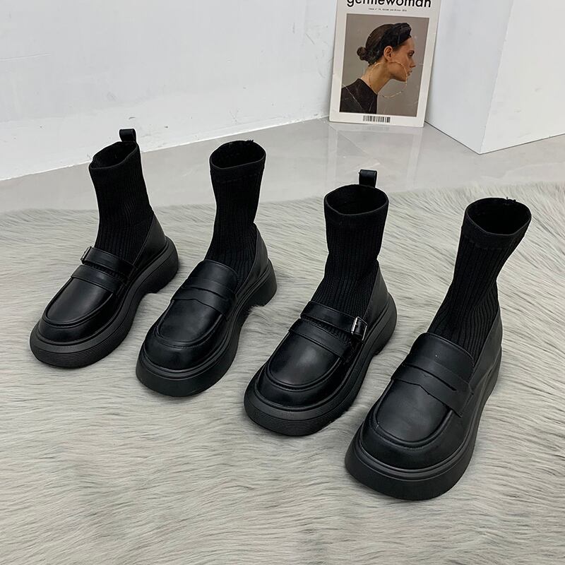 ソックス ブーツオータムスタイルショートブラック薄手 靴 シューズ 秋物 ラウンドトー タイツ ストッキング 8/3 シューズ mi5553981872563