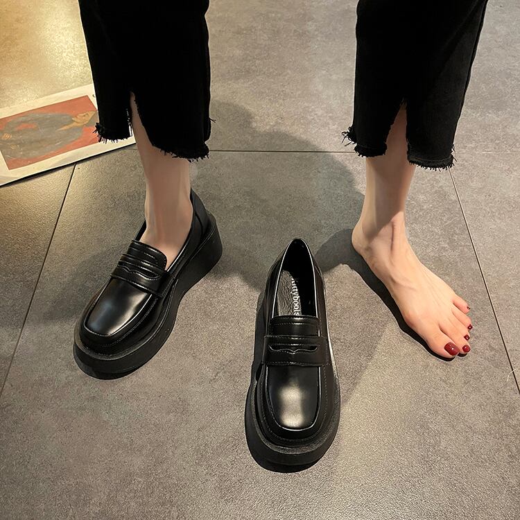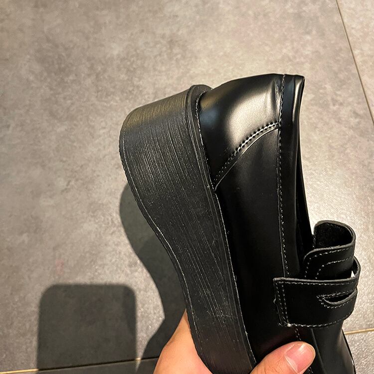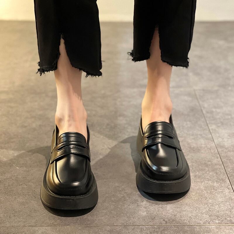 スプリングオータムブラックレザー 靴 シューズ 春物 秋物 8/3 シューズ mi5581265201709