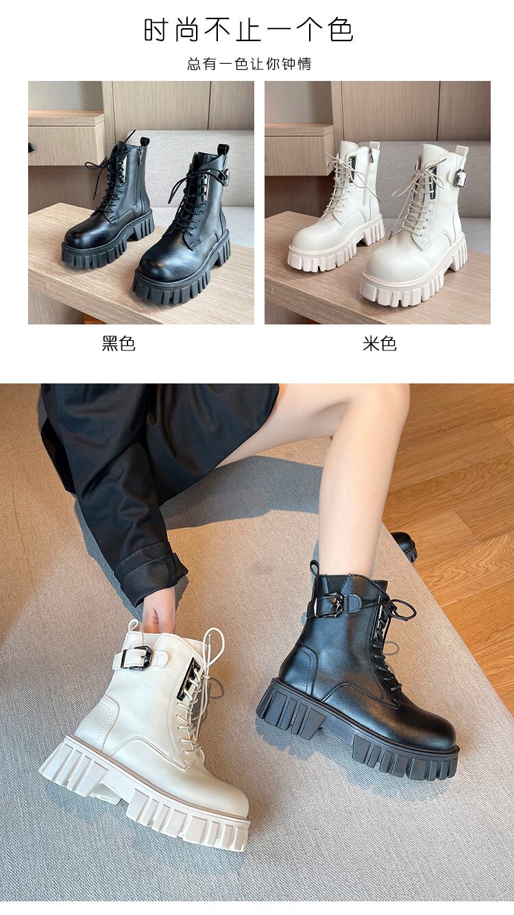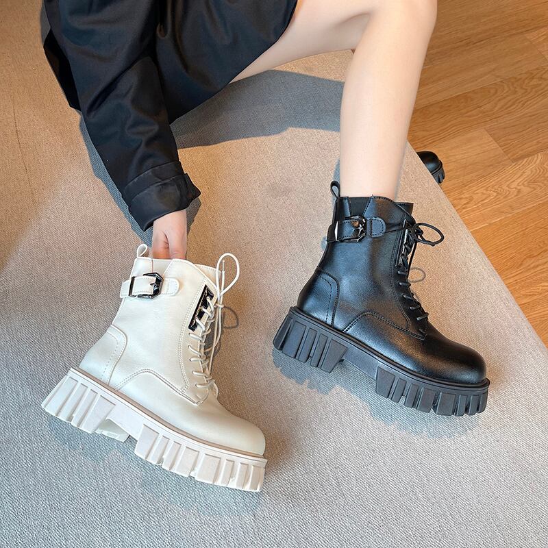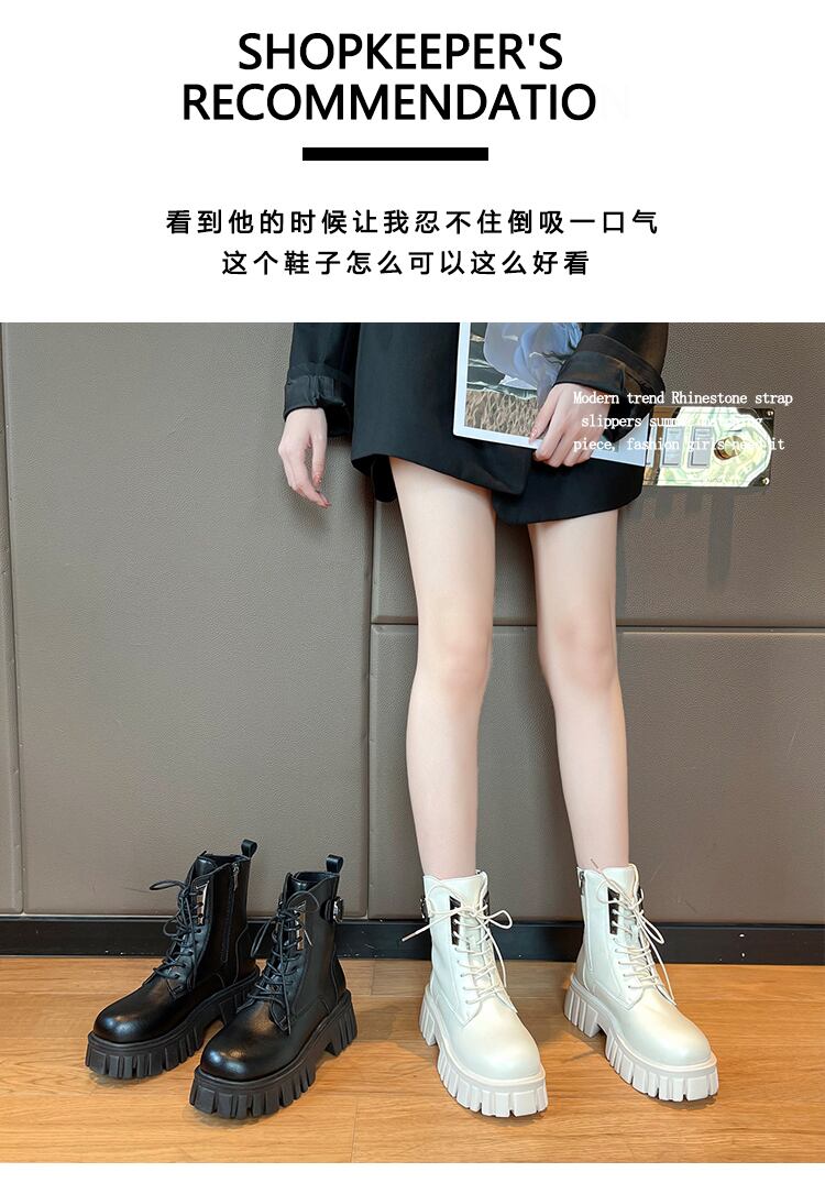 ショートブーツスプリングオータムサイドジッパー レース 靴 シューズ 春物 秋物 レースアップ 8/3 シューズ mi5585598894189