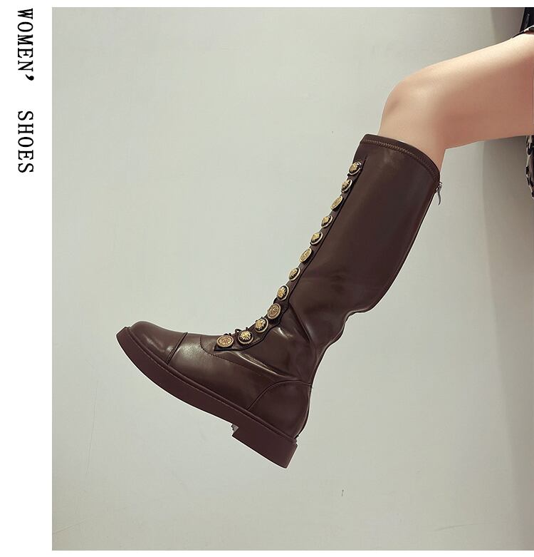 スプリングオータムレッドボタンロングブーツ 靴 シューズ 春物 秋物 8/3 シューズ mi555510779060