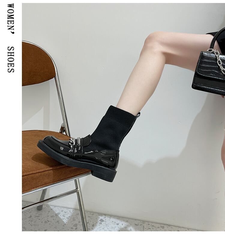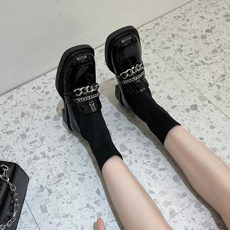 ソックス ブーツオータムレッドチェーン ショートブラック 靴 シューズ 秋物 タイツ ストッキング 8/3 シューズ mi5576653990643