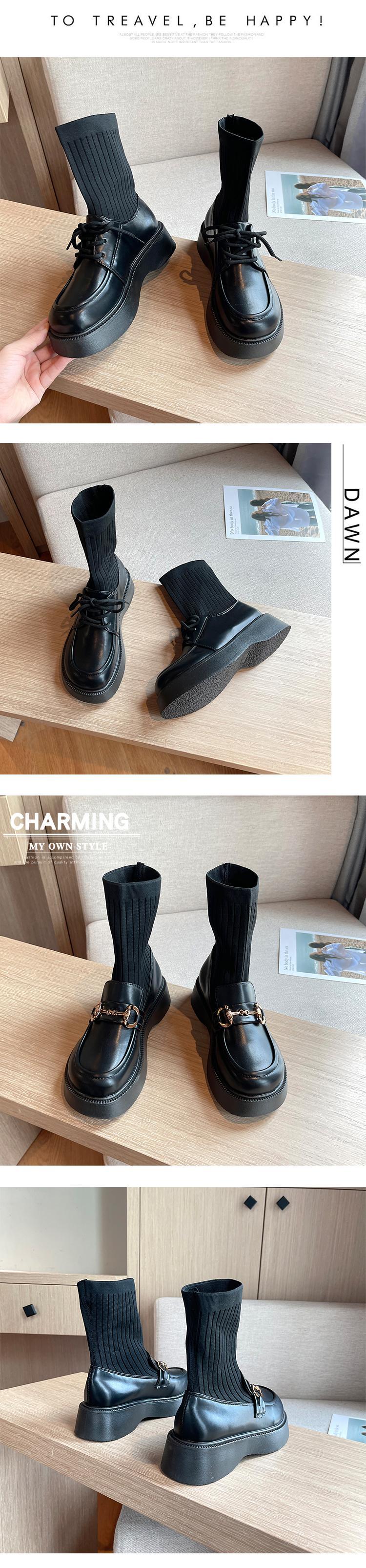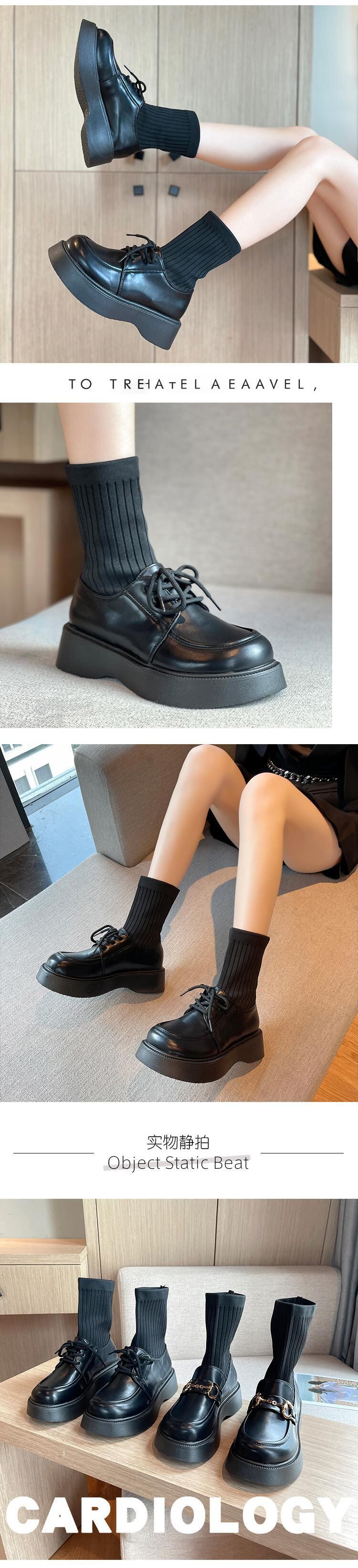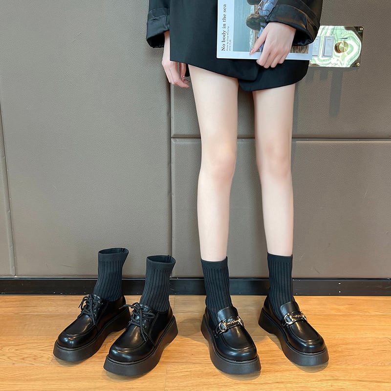ソックス ブーツスプリングオータムレーススタイルブラック 靴 シューズ 春物 秋物 ラウンドトー タイツ ストッキング レースアップ 8/3 シューズ mi5547874159035