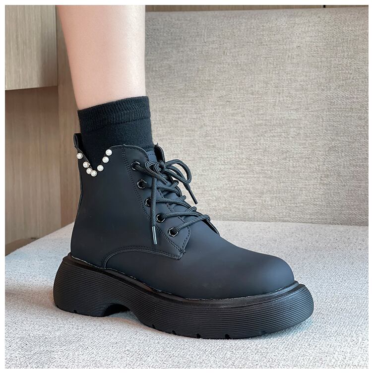 スタンダードショートブーツオータムレッド レトロ レース 靴 シューズ 秋物 レースアップ 8/3 シューズ mi5596580355018