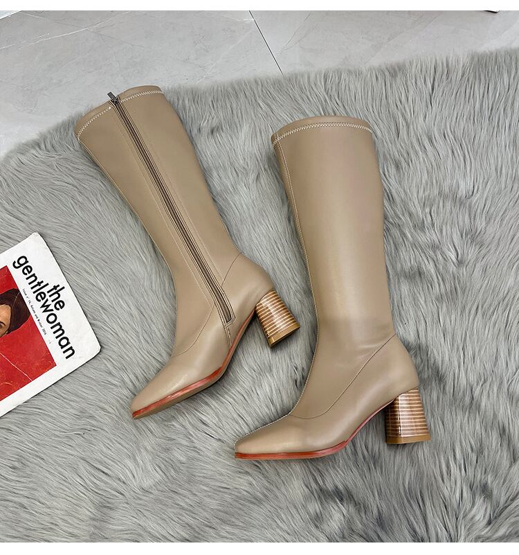 ロングブーツオータムレッドスタンダードホワイト レトロ 靴 シューズ 秋物 スクウェア 8/3 シューズ mi5595742356896