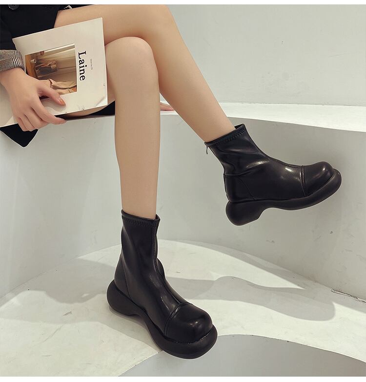 ホワイトショートブーツオータムレッドバックジッパー薄手 靴 シューズ 秋物 8/3 シューズ mi5559407490352