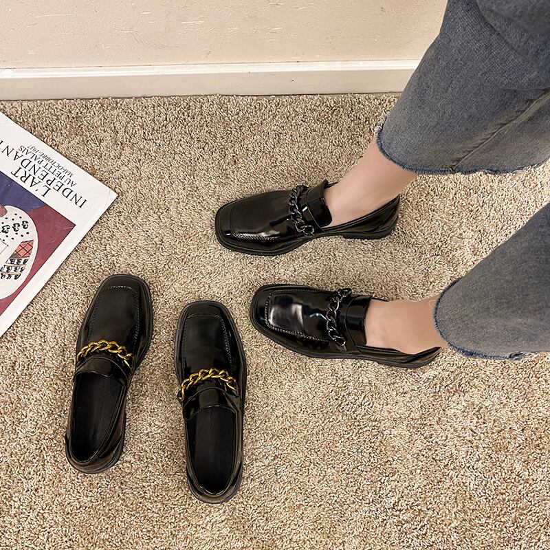 レザースプリングオータムレッドセット メタルチェーン 靴 シューズ 春物 秋物 8/3 シューズ mi5544207478732