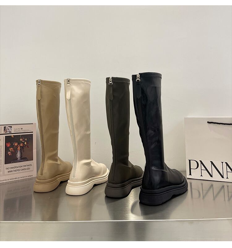 ブーツオータムレッドホワイトロング 靴 シューズ ストリート 秋物 8/3 シューズ mi552312566220