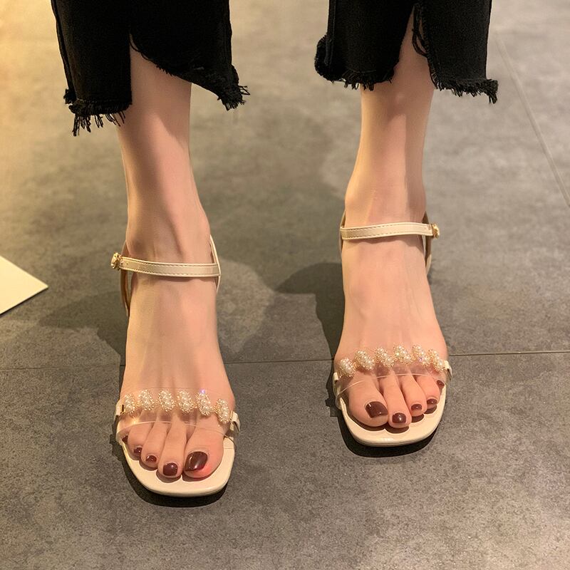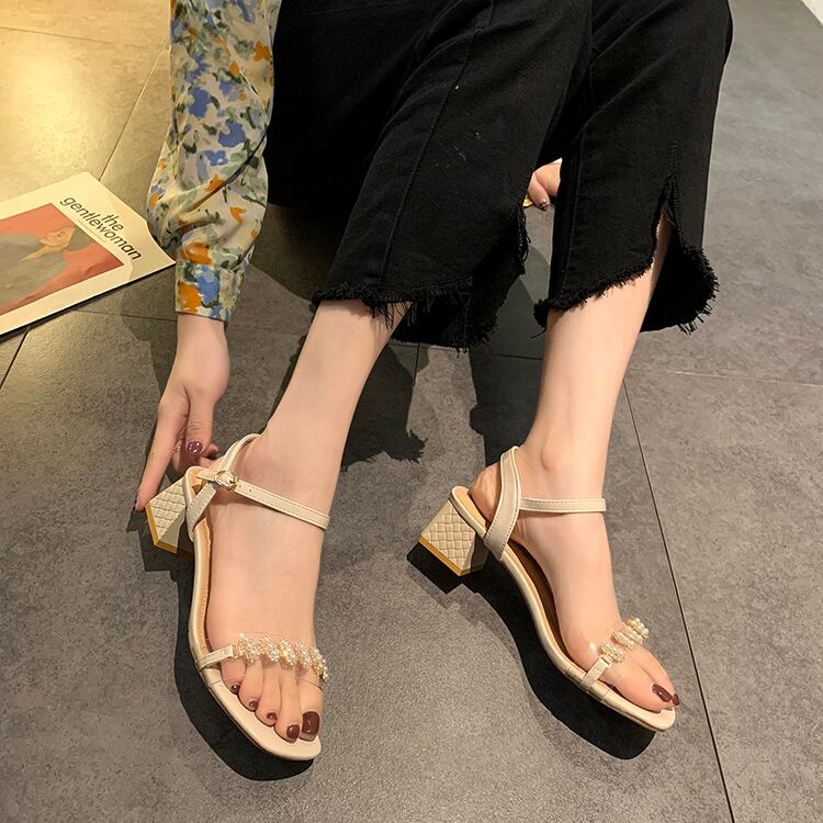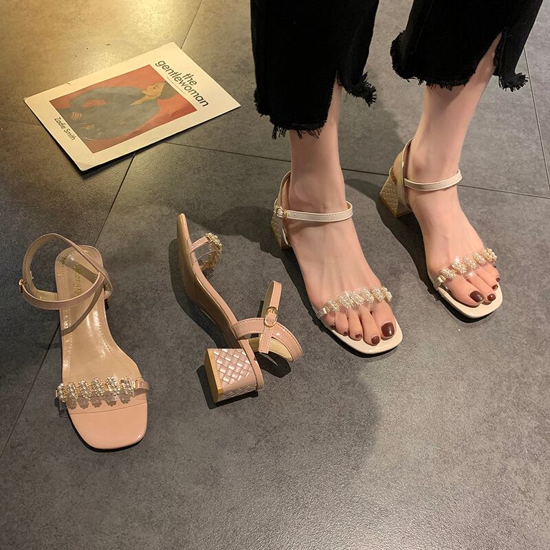 サンダルサマーレッドスタイルカジュアルバックルヒール ハイヒール 靴 シューズ 夏物 8/3 シューズ mi5518530176023