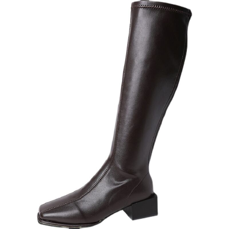 ロングブーツスプリングオータムジッパーレッドスタンダード レトロ 靴 シューズ 春物 秋物 スクウェア 8/3 シューズ mi5555693326276
