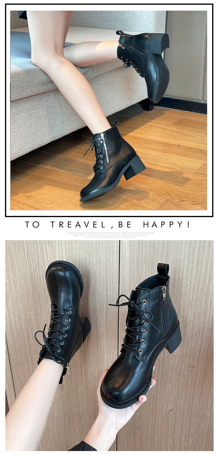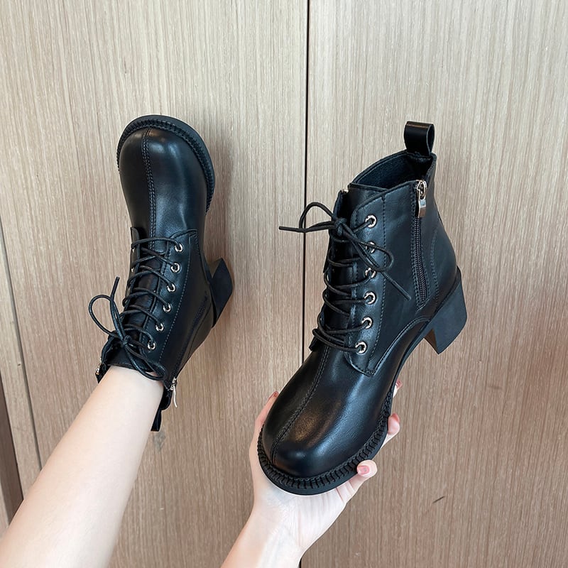 ブーツスプリングオータムレッドサイドジッパーショート レース 靴 シューズ 春物 秋物 レースアップ 8/3 シューズ mi5543573911806