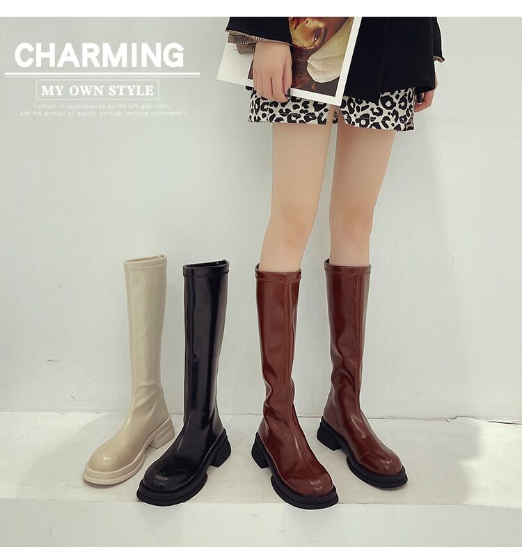 スタンダードブーツオータムレッドスタイルブラックロング レトロ 靴 シューズ 秋物 8/3 シューズ mi558417691060
