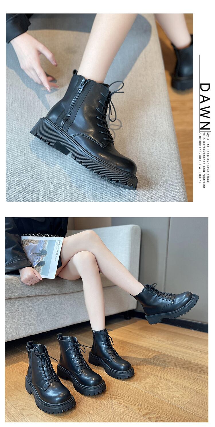ブーツスプリングオータムスタイルサイドジッパーショート レース 靴 シューズ 春物 秋物 レースアップ 8/3 シューズ mi5555533992982