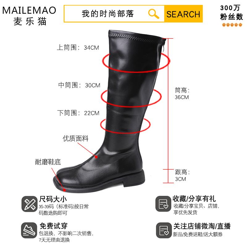 ロングブーツオータムブラック 靴 シューズ 秋物 スクウェア 8/3 シューズ mi5593543015857