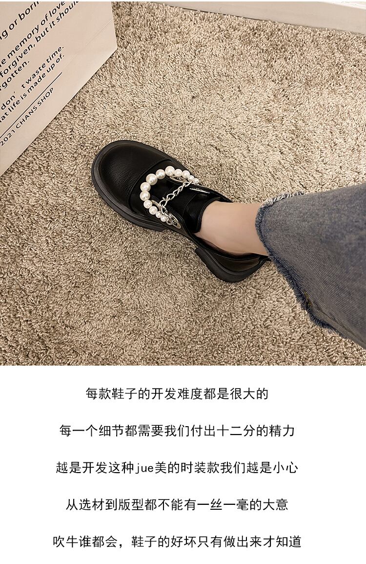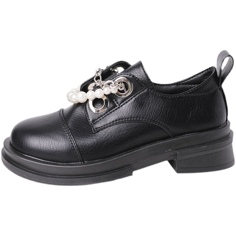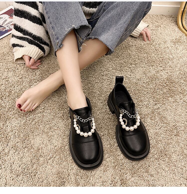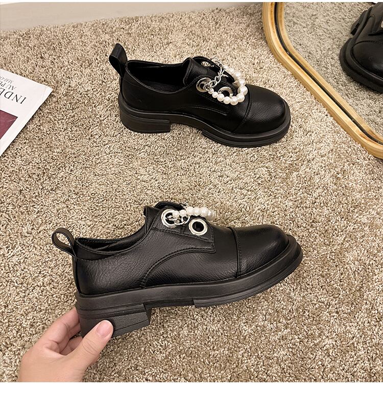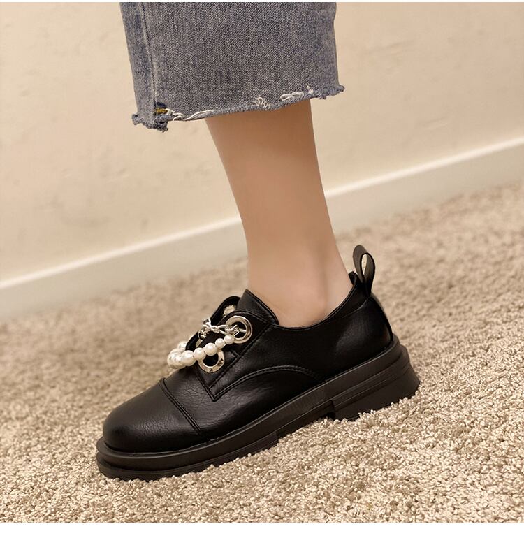 シングルスプリングオータムスタンダードパールチェーン レザー 靴 シューズ レトロ 春物 秋物 ラウンドトー 真珠 8/3 シューズ mi5591774695654