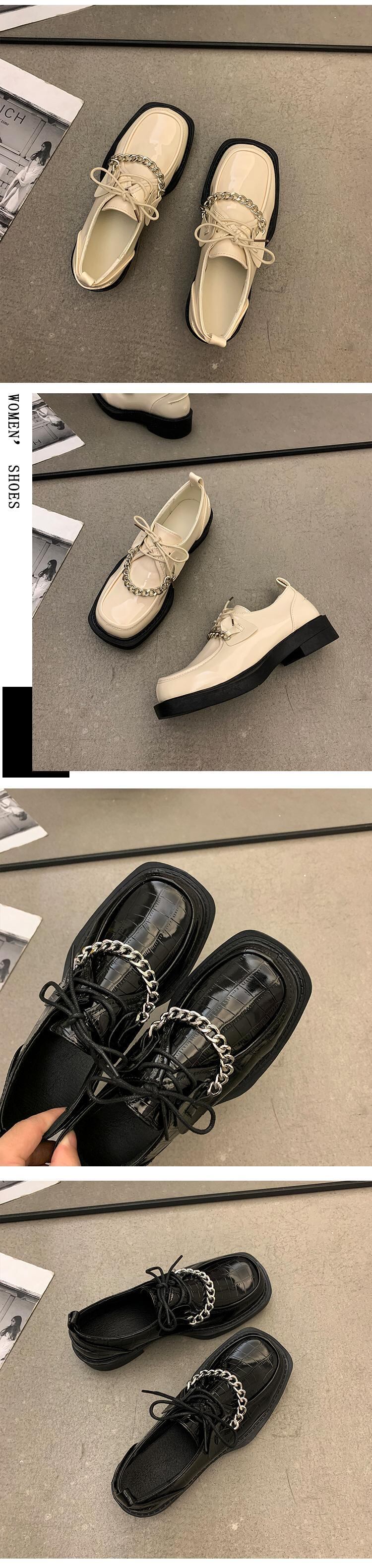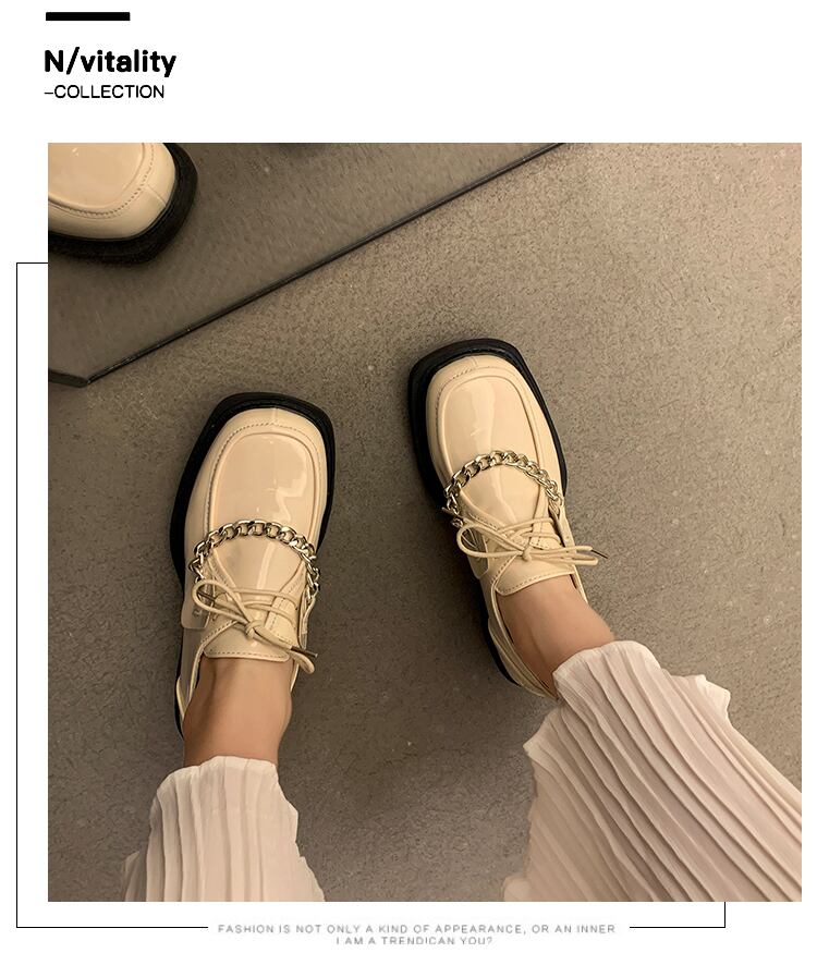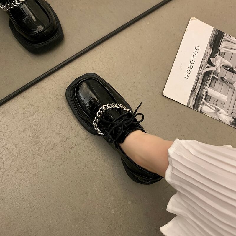スタイルレザースプリングオータムチェーン ブラック薄手 靴 シューズ 春物 秋物 8/3 シューズ mi5577526637767
