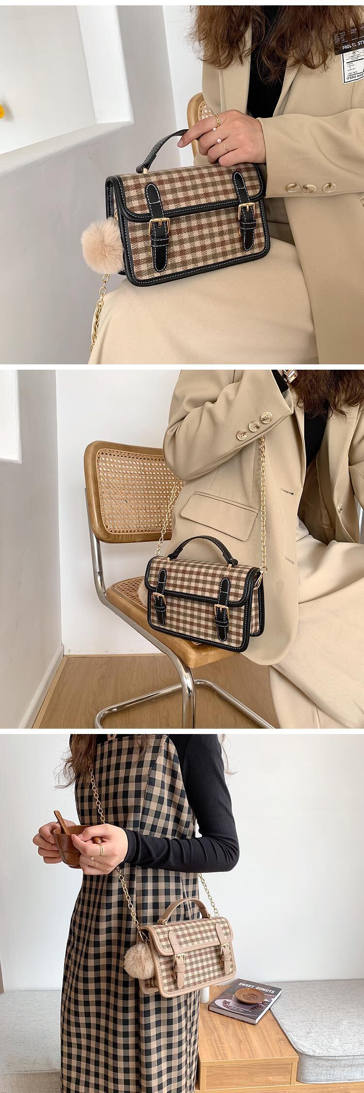 格子柄チェーン スクウェア メッセンジャーバッグ 9/24 bag バッグ 秋冬 mi5588150279453