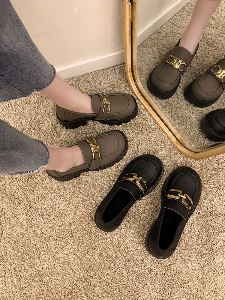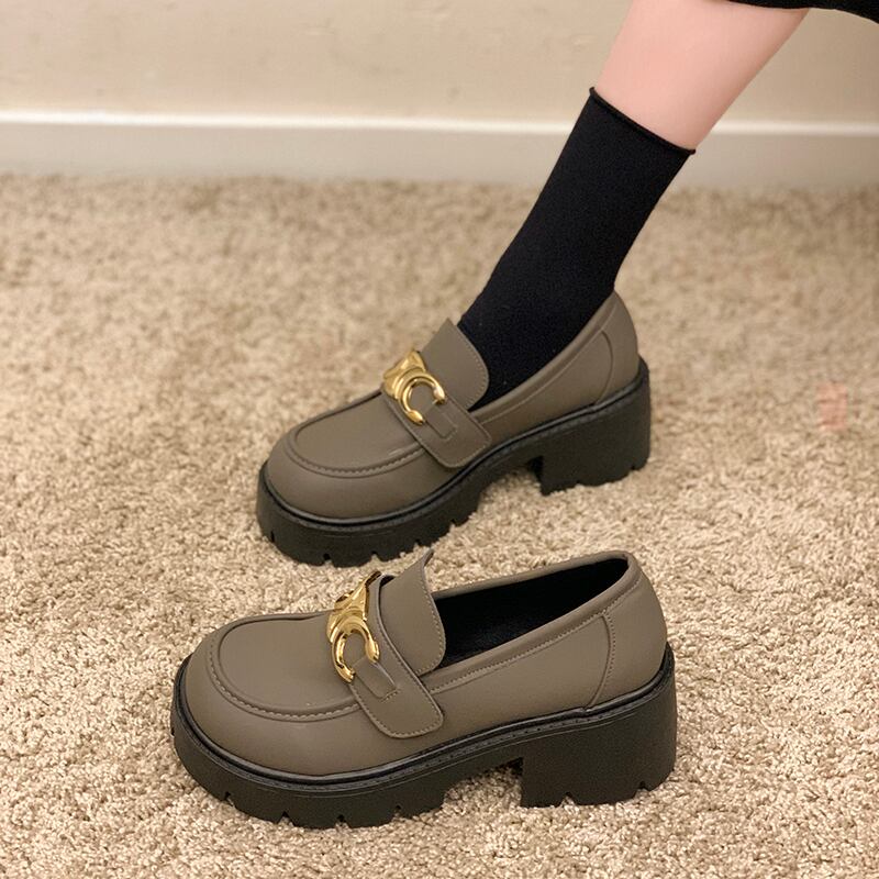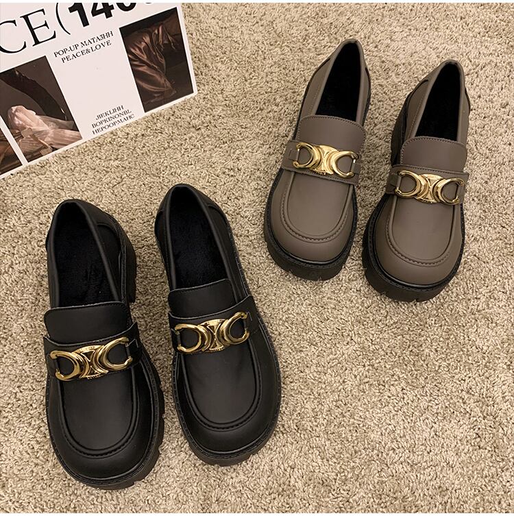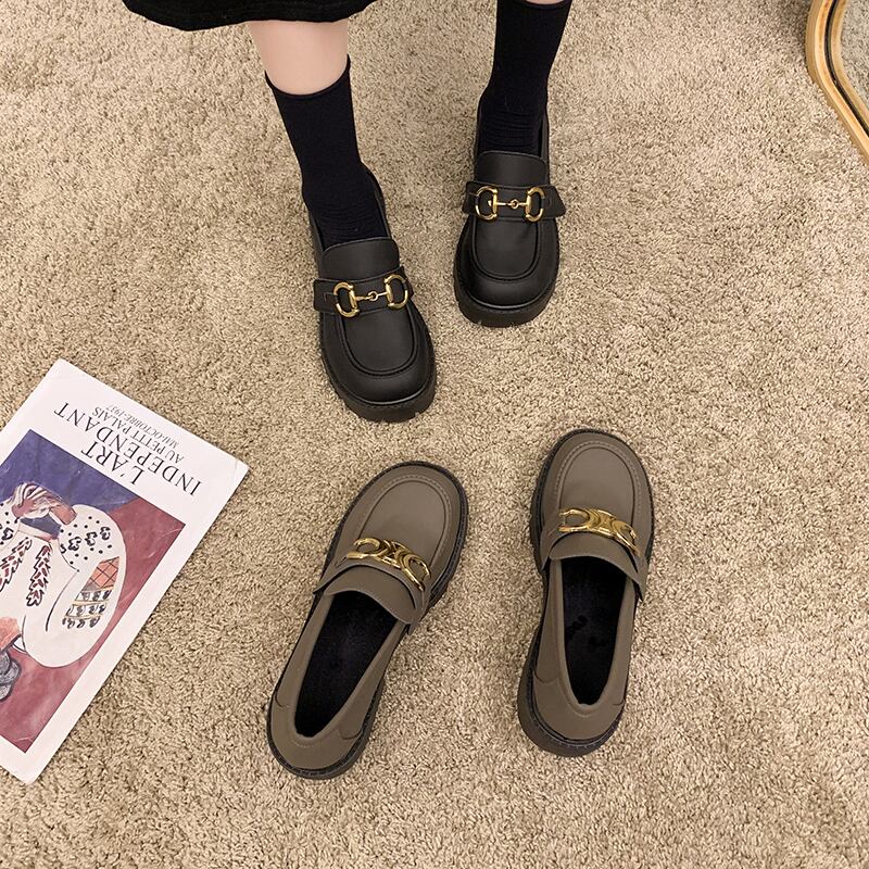 レッドレザーウィンターメタルバックルスタンダード 靴 シューズ レトロ ストリート 冬物 ラウンドトー 11/24 シューズ ブーツ 秋服 mi5510109358988