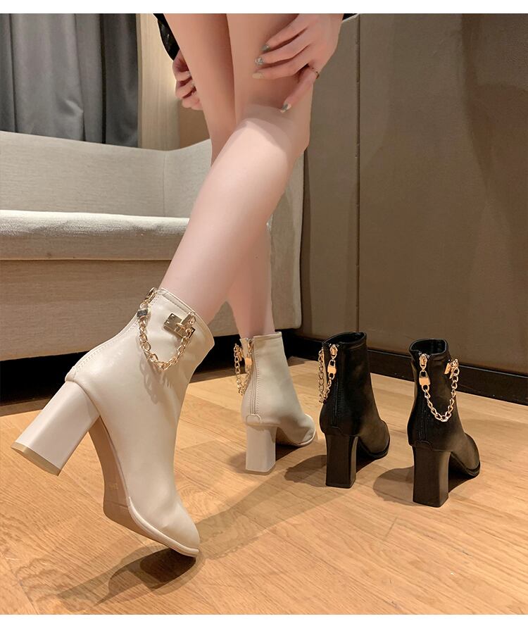 レッド薄手ブーツオータムチェーン ハイヒール 靴 シューズ 秋物 11/24 シューズ ブーツ 秋服 mi5574075318347