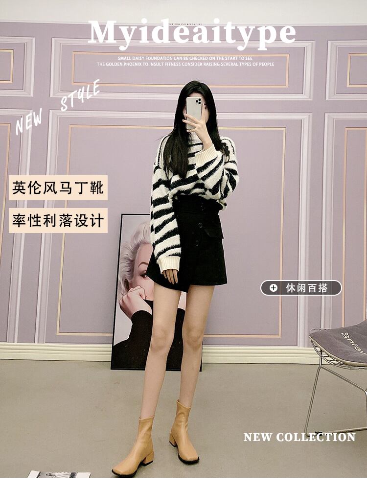ショートブーツスプリングオータムバックジッパー薄手 靴 シューズ 春物 秋物 スクウェア 11/24 シューズ ブーツ 秋服 mi5532401507697