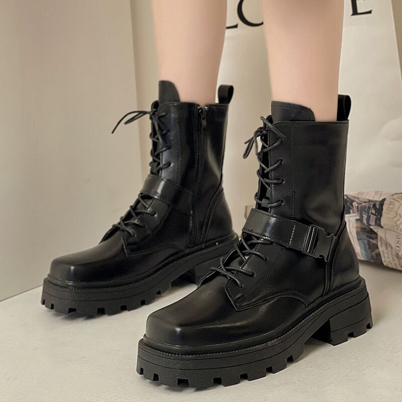 ブーツオータムウィンターサイドジッパー レース 靴 シューズ 秋物 冬物 レースアップ スクウェア 11/24 シューズ ブーツ 秋服 mi555812678923
