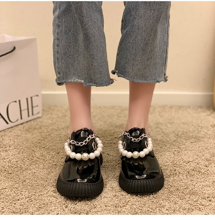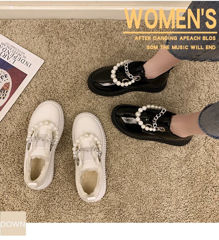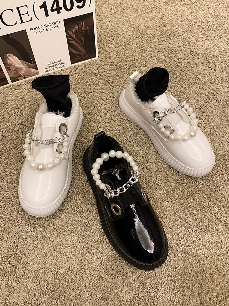 シングルレディーススタイルパールチェーン スタンダードブラックベルベット 靴 シューズ コットン レトロ オータム 秋物 ウィンター 冬物 真珠 11/24 シューズ ブーツ 秋服 mi5575049324250