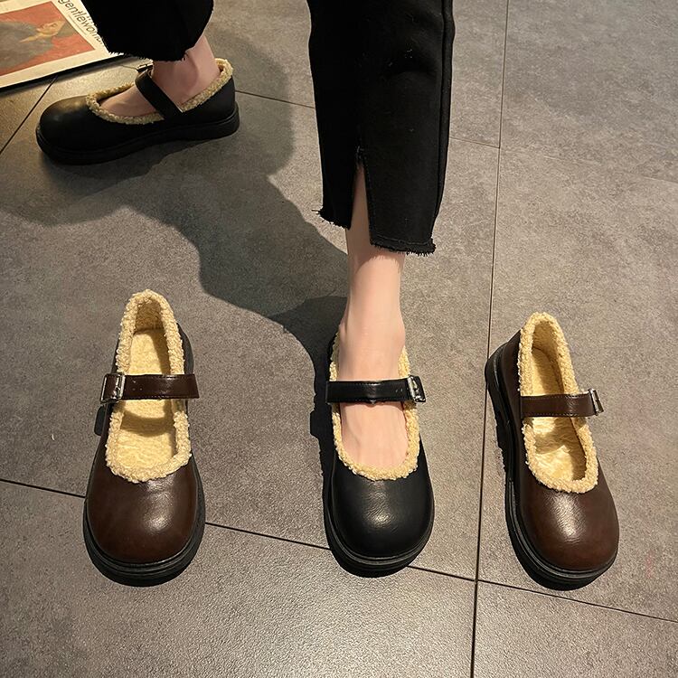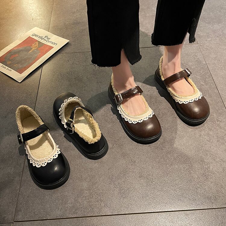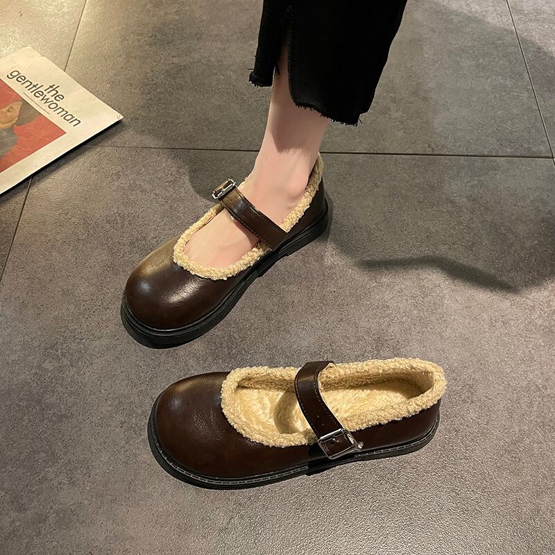 レッドシングルウィンターベルベットスタンダードレザー 靴 シューズ レトロ 冬物 11/24 シューズ ブーツ 秋服 mi558993814209