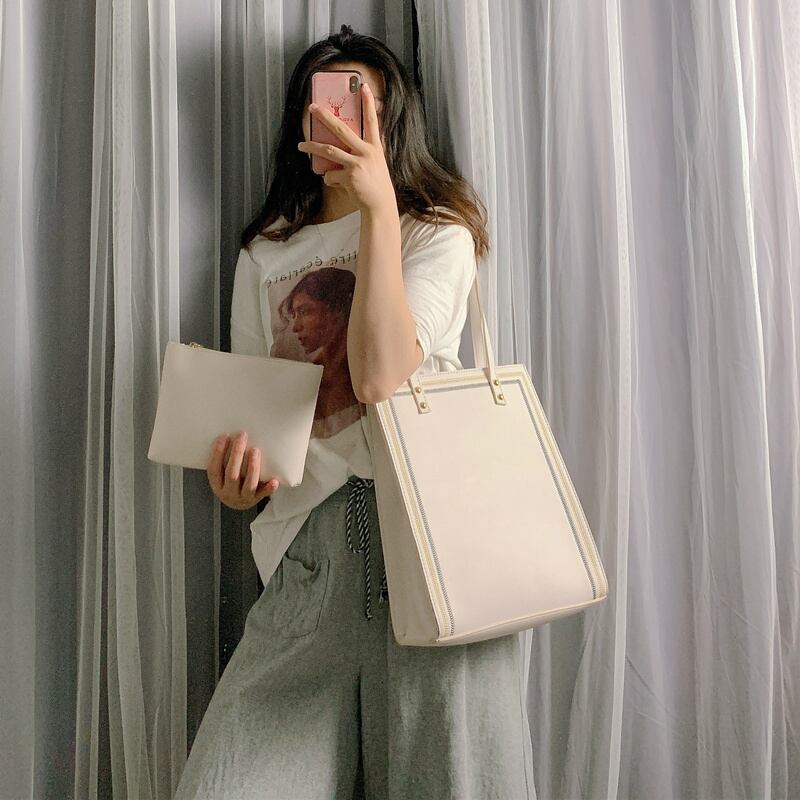色:オフホワイト、小袋付き,ポーチ付きブラック,小さなバッグと緑