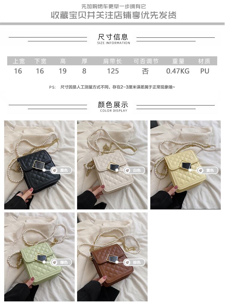 サマーパールチェーン スタイル 夏物 真珠 スクウェア メッセンジャーバッグ 4/12 bag 鞄 バッグ mi5599901856986