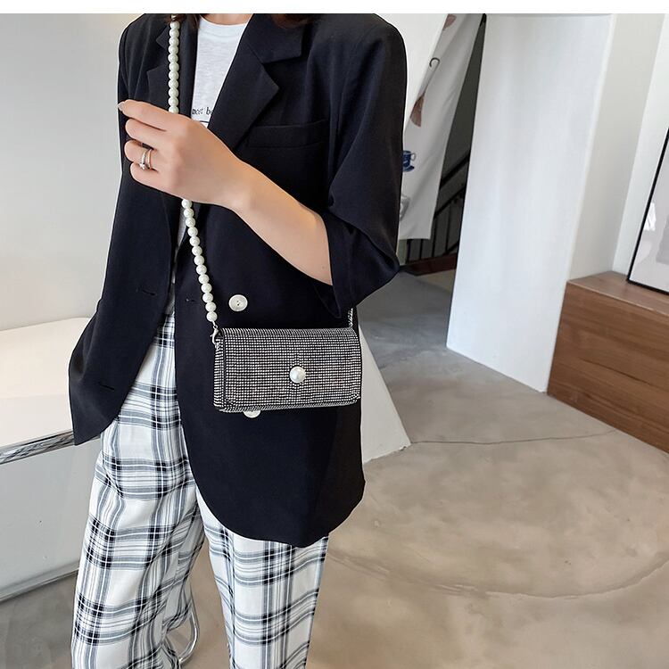 パールチェーン サマーミニレッド 夏物 真珠 スクウェア メッセンジャーバッグ 4/12 bag 鞄 バッグ mi5511786081508