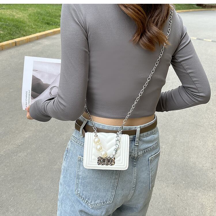パールチェーン ミニサマー 夏物 真珠 スクウェア メッセンジャーバッグ ミニバッグ 6/28 bag 鞄 バッグ mi5571054342018